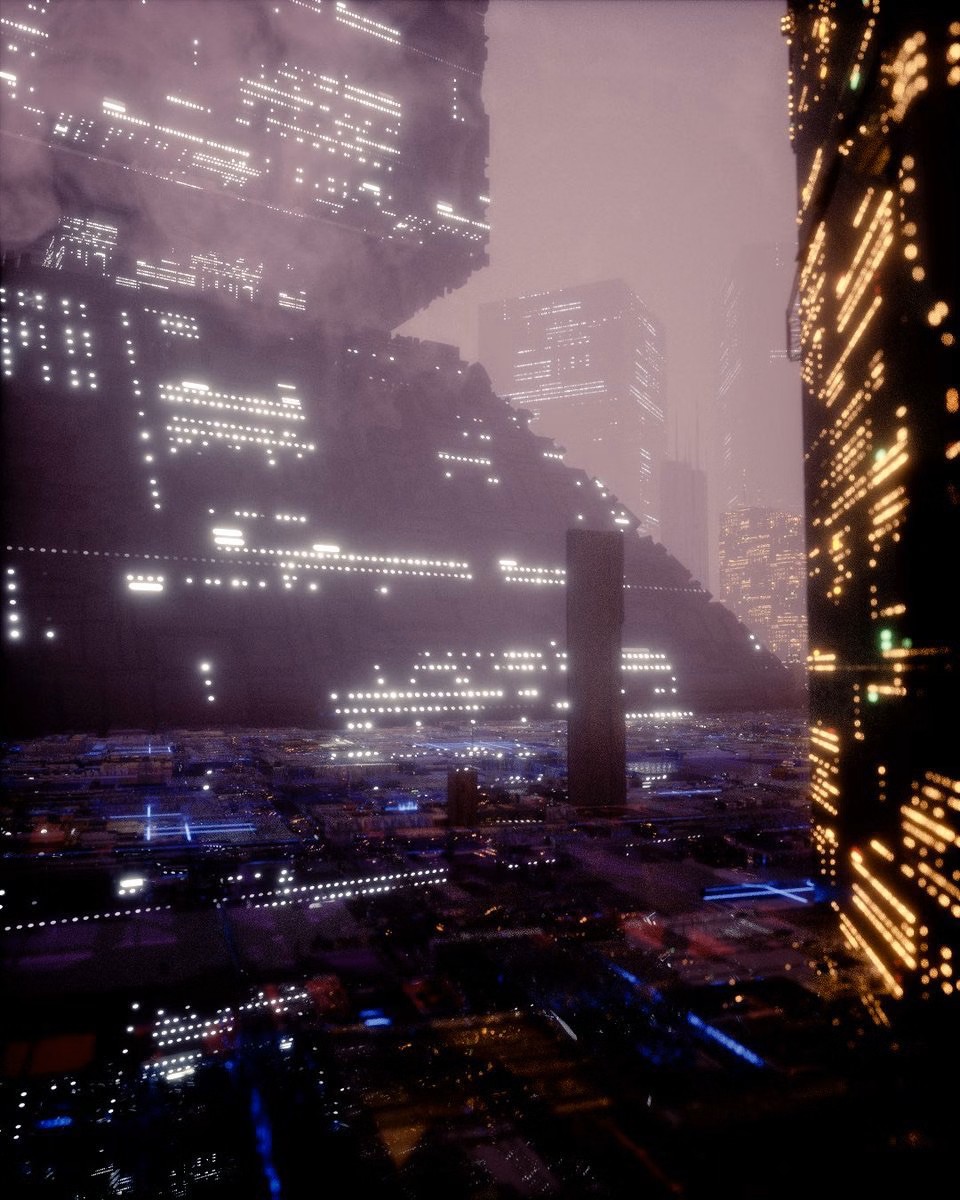 NEOCEPHALOS is inspired by such media as both Blade Runner movies, Dredd, Cyberpunk 2077 and the big city cyberpunk genre in general. Depending on the megabuilding or even the floor of a megabuilding, the setting's aesthetics can veer from claustrophobic neon chaos to clanking austere brutalism to peaceful zen quiet.